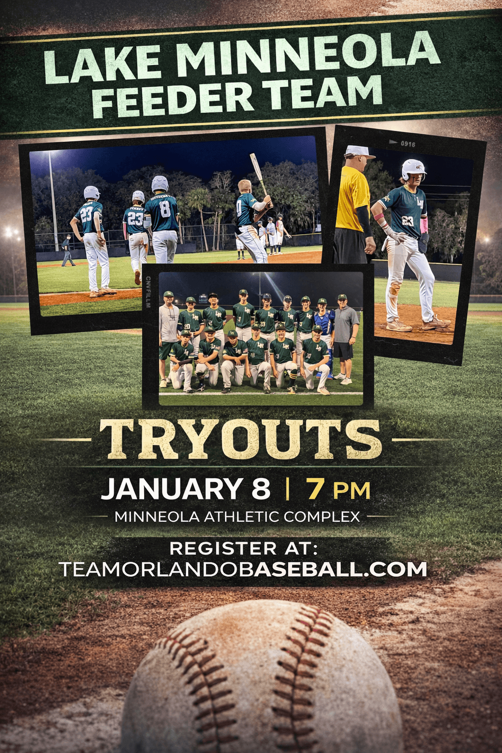 Team Orlando fields competitive teams in the 8U through 14U age groups, with active teams typically ranging from 10U to 14U. Players compete in local tournaments with selective travel opportunities throughout the year. Tryouts are held for each season and include evaluations of hitting, fielding, athleticism, and coachability. Families can contact the organization for upcoming dates and registration details.